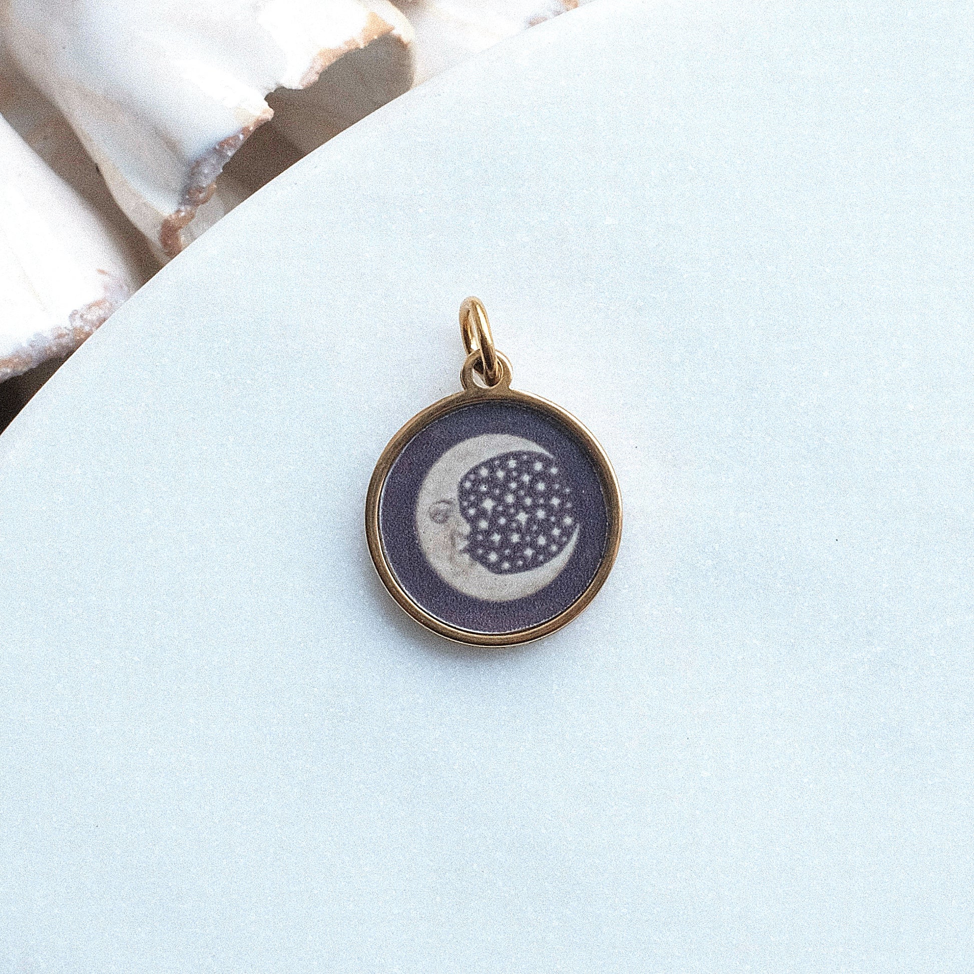 Gold Moon and Stars Pix Charm